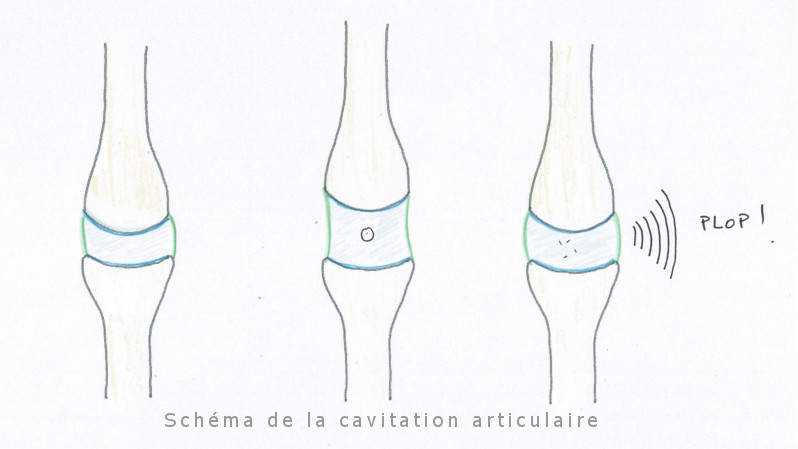 L’articulation étant fermée, l’augmentation rapide de l’espace entre les surfaces articulaires provoque un phénomène de tribonucléation : les gaz dissous dans le liquide synovial forment une microscopique bulle qui implose rapidement en générant un son.